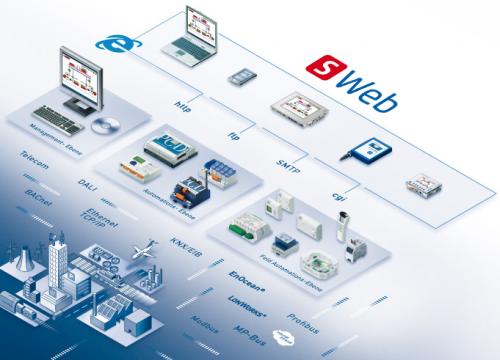 Technologia Web, na bazie SBC S-Web, zastosowana w produktach Saia Burgess Controls oznacza możliwość nieograniczonej komunikacji dzięki wbudowanemu serwerowi internetowemu. Niezależnie od tego, czy chodzi o wizualizację danych procesu czy też należy odczytać poprzez sieć obiektu aktualne zużycie energii, wszystko to odbywa się poprzez standardowy interfejs komunikacyjny. Ekrany paneli graficznych wymagają jednynie standardowej przeglądarki internetowej. Dzięki uznanym standardom komunikacyjnym, w prosty i bezpieczny sposób możliwy jest dostęp do danych procesu takich jak komunikaty, ew. alarmy i dane o zużyciu energii z dowolnego punktu na kuli ziemskiej.